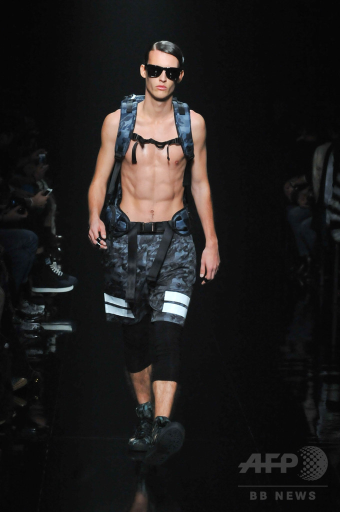「今シーズンは、色々な文化を織り交ぜつつ、羽根などを使ってデザインしたかった。パリやミラノといった色々な都市がありますが、その文化の観点から、全てをミックスさせて、音楽もそうですが、ダンス風にまとめて全体的にバランスをとりました」とアンドレア・ポンピリオ。(c)MODE PRESS