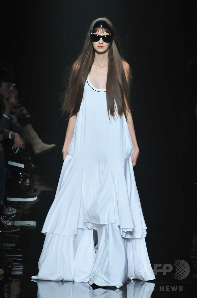 「今シーズンは、色々な文化を織り交ぜつつ、羽根などを使ってデザインしたかった。パリやミラノといった色々な都市がありますが、その文化の観点から、全てをミックスさせて、音楽もそうですが、ダンス風にまとめて全体的にバランスをとりました」とアンドレア・ポンピリオ。(c)MODE PRESS