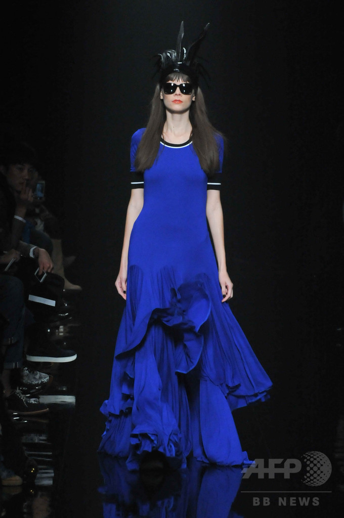 「今シーズンは、色々な文化を織り交ぜつつ、羽根などを使ってデザインしたかった。パリやミラノといった色々な都市がありますが、その文化の観点から、全てをミックスさせて、音楽もそうですが、ダンス風にまとめて全体的にバランスをとりました」とアンドレア・ポンピリオ。(c)MODE PRESS