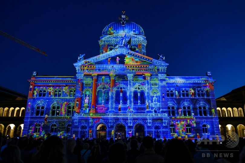 【10月18日 AFP】スイス・ベルン(Bern)で17日、議会議事堂の壁面にさまざまな映像を映し出すプロジェクションマッピングが上演された。