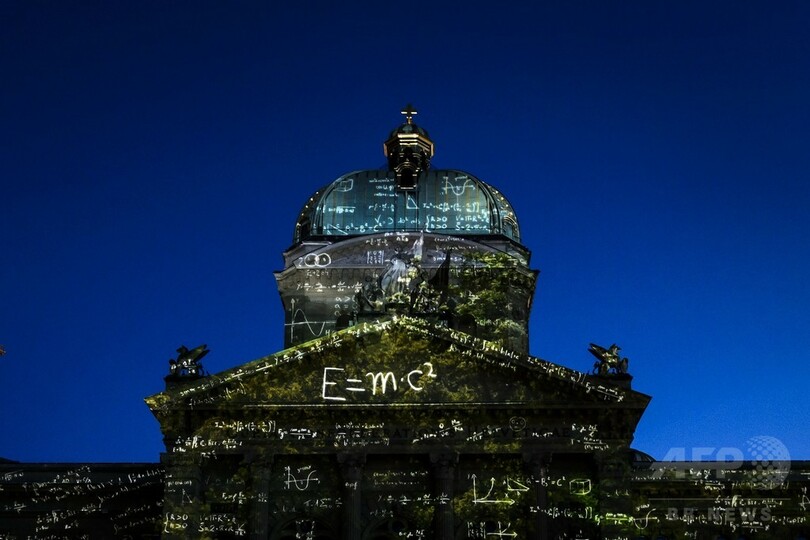 仏企業「スペクタキュレア・アリューメア・ディマージュ(Spectaculaires Allumeurs d'Images)」が手掛けるこのショーは入場料無料。有名なアインシュタイン(Einstein)の公式「E = mc2」もデザインに取り入れた光と映像のショーは、11月30日までの毎晩2回、開催される。(c)AFP