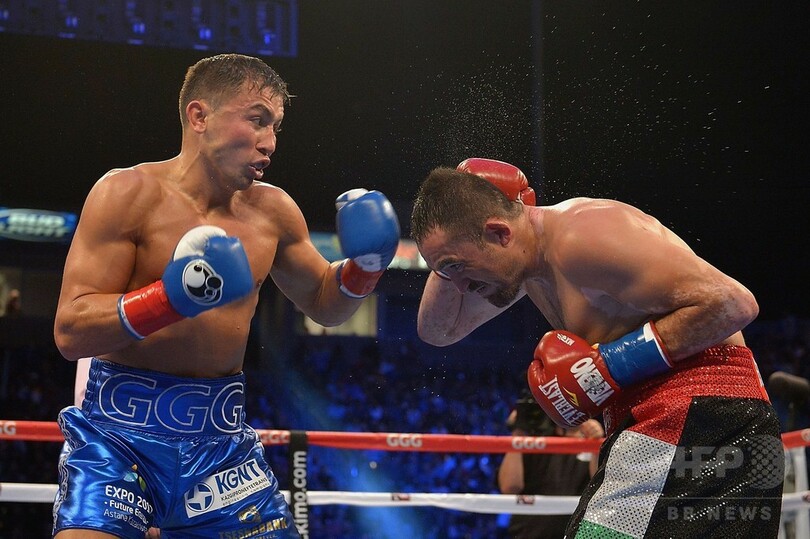 【10月19日 AFP】ボクシング、WBA・WBC世界ミドル級王座統一戦12回戦は18日、米カリフォルニア(California)州ロサンゼルス(Los Angeles)のスタブハブ・センター(StubHub Center)で行われ、WBA王者のゲンナディ・ゴロフキン(Gennady Golovkin、カザフスタン)が2回KOでWBC暫定王者のマルコ・アントニオ・ルビオ(Marco Antonio Rubio、メキシコ)を下した。