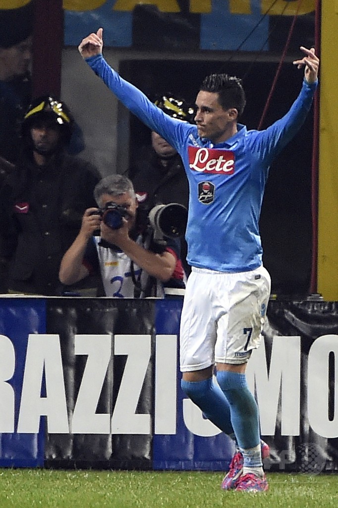 ラファエル・ベニテス(Rafael Benitez)監督率いるナポリは、現在リーグ7位につけており、首位ユベントス(Juventus)とは、勝ち点8差を離されている。インテルは同9位で、勝ち点10差でユベントスを追う。(c)AFP