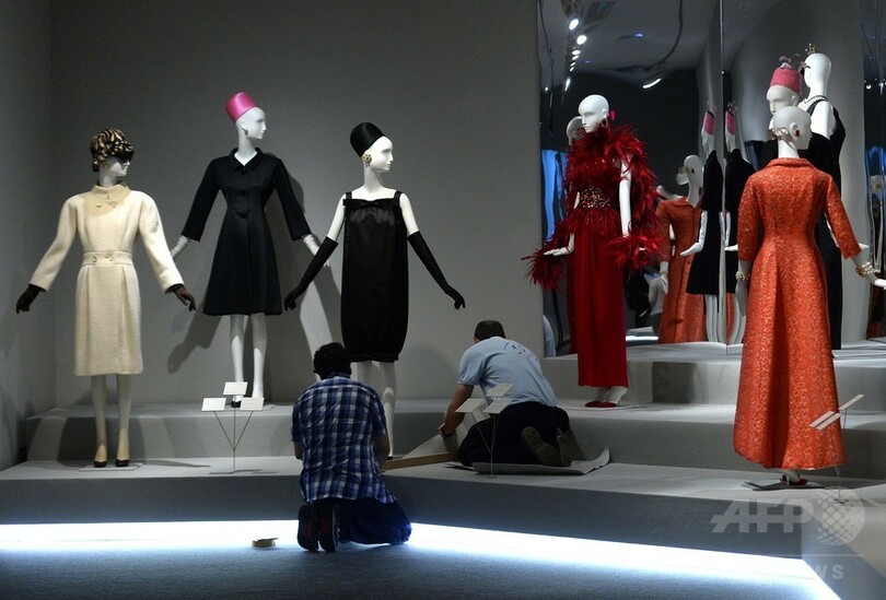 同展は、フランス人デザイナーのユベール・ド・ジバンシィを大々的にフィーチャーした初の回顧展。開催に先駆け20日に行われた記者会見には、ジバンシィ本人も出席した。(c)AFP