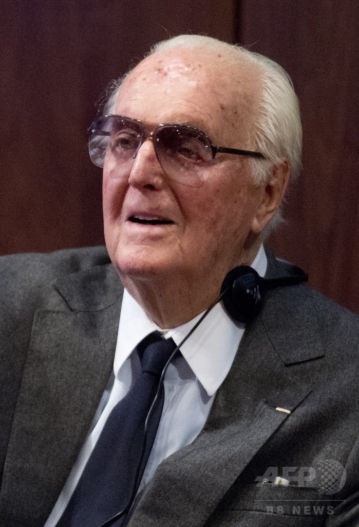 同展は、フランス人デザイナーのユベール・ド・ジバンシィを大々的にフィーチャーした初の回顧展。開催に先駆け20日に行われた記者会見には、ジバンシィ本人も出席した。(c)AFP