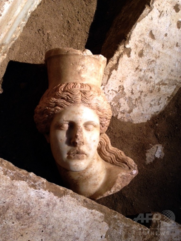 【10月22日 AFP】(写真追加)ギリシャ北部マケドニア(Macedonia)地方のアンフィポリス(Amphipolis)の同国最大の古代墓地遺跡で、大理石のスフィンクスの頭部がほぼ完全な状態で発見された。同国文化省が21日、発表した。