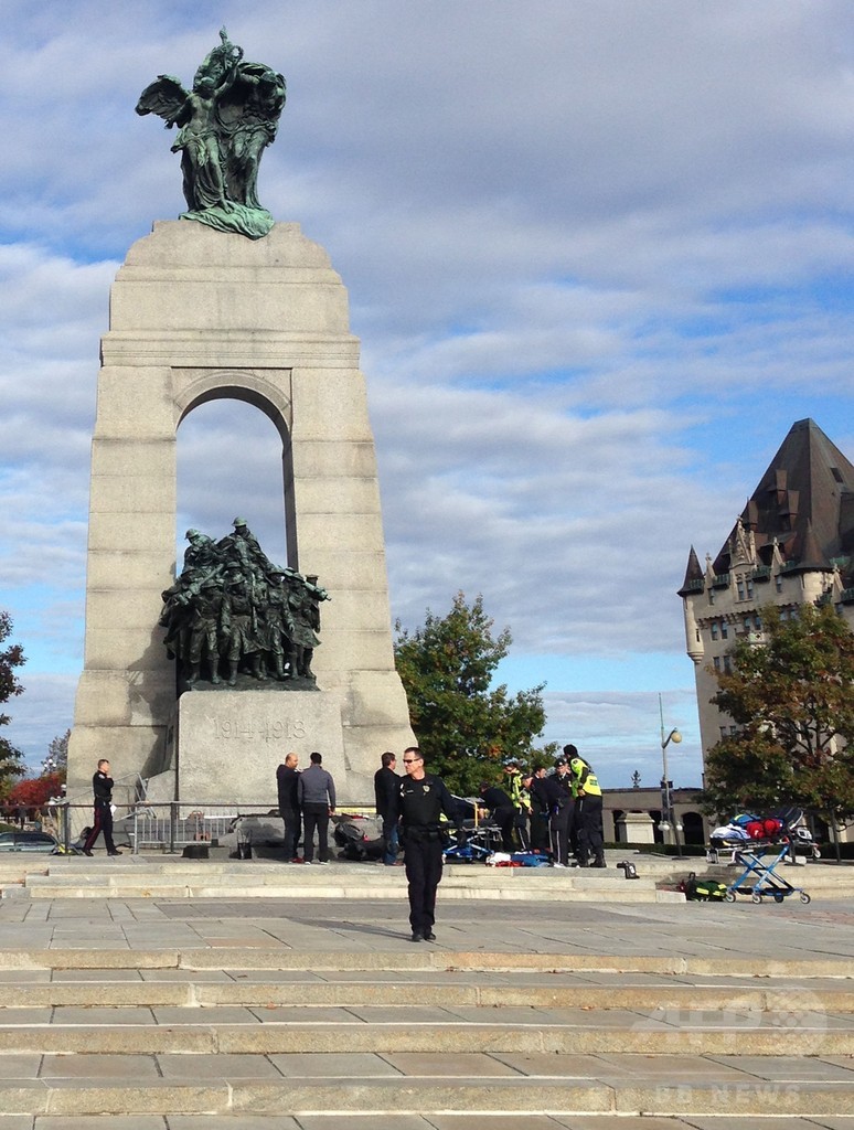 【10月23日 AFP】カナダの首都オタワ(Ottawa)で22日、銃を持った男が戦没者慰霊碑を警備中の兵士を射殺した後、近くの国会議事堂に侵入し、銃を乱射する事件があった。容疑者は警察に射殺された。