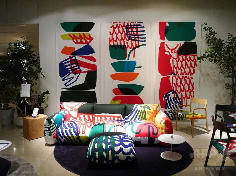 鈴木氏が展開するブランド「オッタイピイヌ(OTTAIPNU)」のアーカイブのテキスタイルをパッチワークのようにつなぎ合わせて作られた「DANCE」。「最初は実際の生活で使えるような落ち着きを持ったデザインにしたいと考え、赤っぽい色で統一したり、シックな色でまとめてみたりといろいろ試したがなかなかうまくいかなかった。そこで半ば目を瞑るような感覚で生地同士を合わせてみたら案外しっくりといって、DANCEが完成した」と鈴木氏。「考えてみると、マレンコはもともとクッションを並べたようなデザインになっているので、パーツごとにそれぞれの柄が違うというのはマレンコの性質に合っているのかもしれない。一見ごちゃごちゃしているように見えても全体としてはすごくまとまっていると思う」と語った。