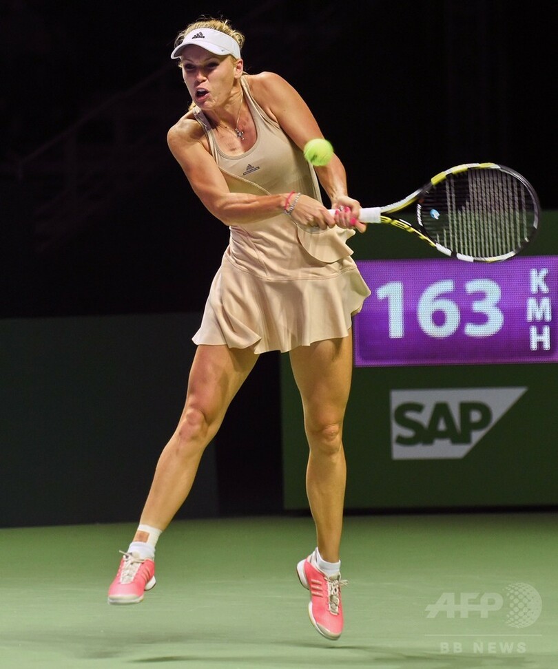 【10月25日 AFP】女子テニス、WTAツアー選手権(BNP Paribas WTA Championships - Singapore 2014)は24日、シンガポールのシンガポール・インドア・スタジアム(Singapore Indoor Stadium)で5日目が行われ、大会第8シードのカロリーネ・ボズニアツキ(Caroline Wozniacki、デンマーク)は6-2、6-3で第3シードのペトラ・クビトバ(Petra Kvitova、チェコ)に勝利し、ラウンドロビン全勝で準決勝進出を決めた。