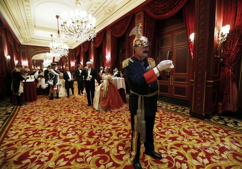 ナポレオン3世によるフランス第二帝政をテーマに、年に1度開催される同ガラでは、ゲストたちが19世紀の舞踏会のドレスを着用してダンスを踊った。(c)AFP