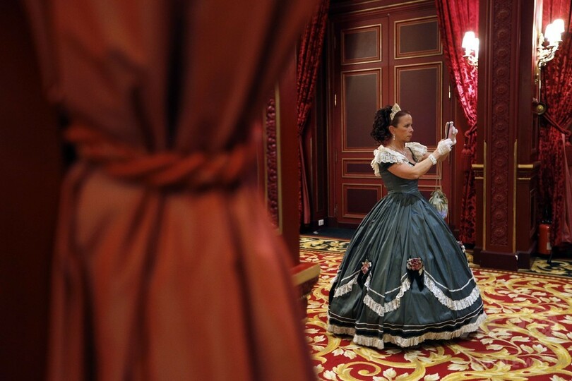 ナポレオン3世によるフランス第二帝政をテーマに、年に1度開催される同ガラでは、ゲストたちが19世紀の舞踏会のドレスを着用してダンスを踊った。(c)AFP