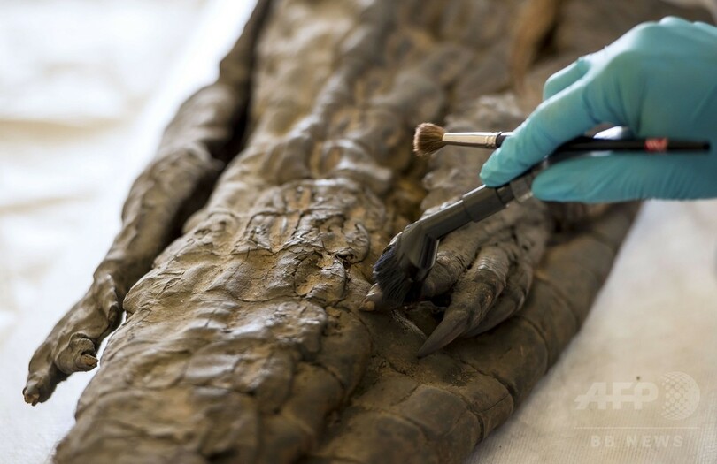 【10月28日 AFP】仏ランス(Lens)にあるルーブル美術館(Louvre)の分館、ルーブル・ランス美術館(Louvre-Lens Museum)で27日、12月から開催予定の特別展「Des Animaux et des Pharaons(動物とファラオ)」で展示されるワニのミイラの修復作業が行われた。会期は12月5日~2015年3月9日まで。(c)AFP