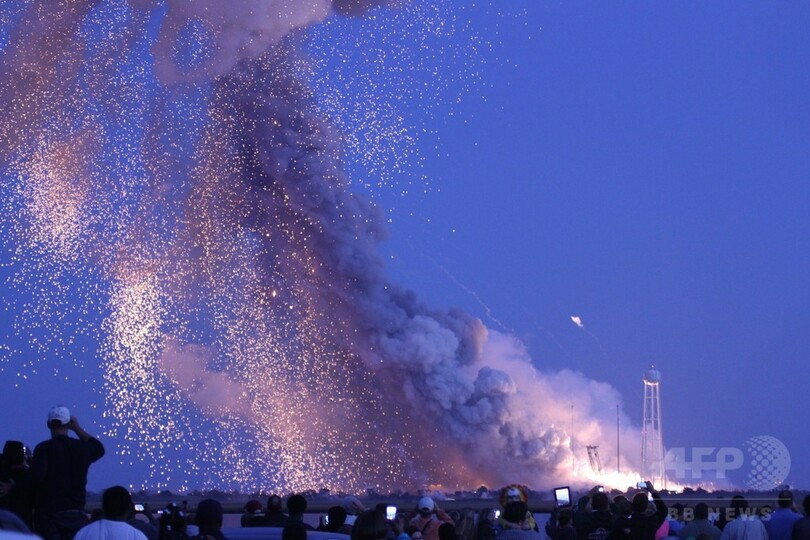 【10月29日 AFP】国際宇宙ステーション(International Space Station、ISS)に物資を送るために28日午後6時22分(日本時間29日午前7時22分)、米バージニア(Virginia)州ワロップス島(Wallops Island)から打ち上げられ、その6秒後に爆発した、米宇宙企業オービタル・サイエンシズ(Orbital Sciences)の無人補給機「シグナス(Cygnus)」を載せたアンタレス(Antares)ロケット。(c)AFP