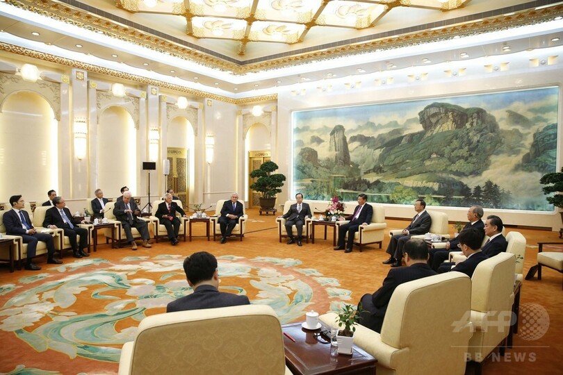 【10月29日 AFP】世界経済フォーラム(World Economic Forum、WEF)のアジア版を目指す「ボアオ・アジア・フォーラム(Boao Asia Forum)」の理事長を務める福田康夫(Yasuo Fukuda)元首相は29日、同フォーラムの理事らとともに中国・北京(Beijing)の人民大会堂(Great Hall of the People)で習近平(Xi Jinping)国家主席と会見した。(c)AFP