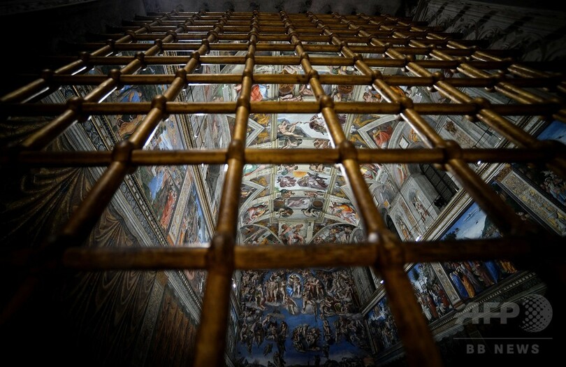 LEDの導入で、ミケランジェロ(Michelangelo)のフレスコ画「最後の審判(Last Judgment)」などにより彩られた礼拝堂内部をより鮮明に見ることができるようになった。15世紀から新法王を選出するための「コンクラーベ」の会場にもなっているこの礼拝堂には、年間約600万人が訪れている。バチカン市国によると、今後は礼拝堂への入場制限を設ける予定だという。(c)AFP