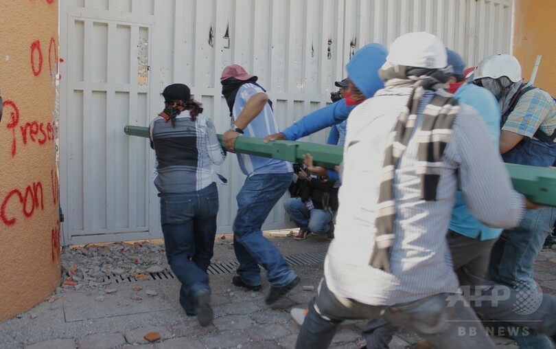 【10月30日 AFP】メキシコ南西部ゲレロ(Guerrero)州の州都チルパンシンゴ(Chilpancingo)で29日、学生43人が先月末から行方不明となっている事件に抗議する教師たちが暴徒化し、アンヘル・アギーレ(Angel Aguirre)州知事の公邸に押し入ろうとした。