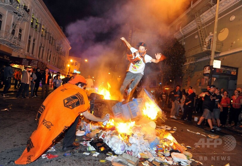 ジャイアンツがタイトルを手にしたあと、カリフォルニアの一部地域では酒に酔ったファンが暴れまわり、数人が逮捕された。また、一部の警察官がボトルまたは花火で攻撃され、軽傷を負っている。(c)AFP