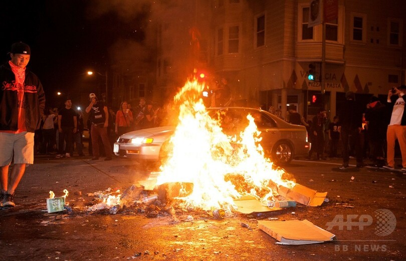 ジャイアンツがタイトルを手にしたあと、カリフォルニアの一部地域では酒に酔ったファンが暴れまわり、数人が逮捕された。また、一部の警察官がボトルまたは花火で攻撃され、軽傷を負っている。(c)AFP