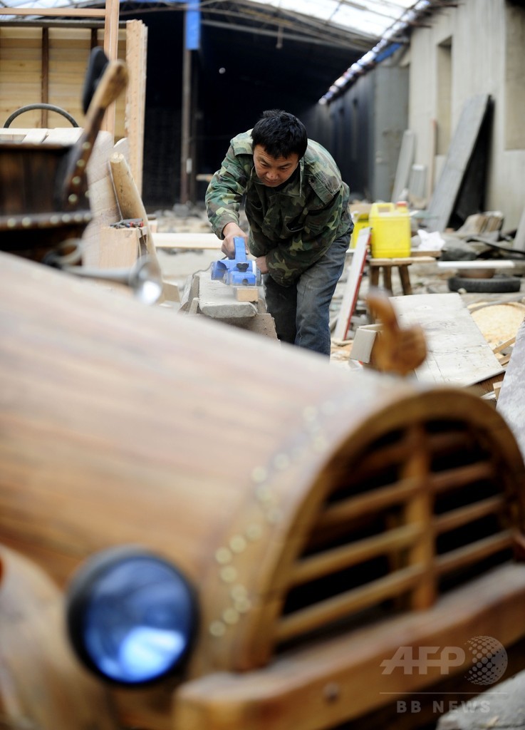 【11月2日 AFP】中国北東部の遼寧(Liaoning)省瀋陽(Shenyang)の大工、劉福竜(Liu Fulong)さん(48)が、手作りで木製の電気自動車を完成させた。