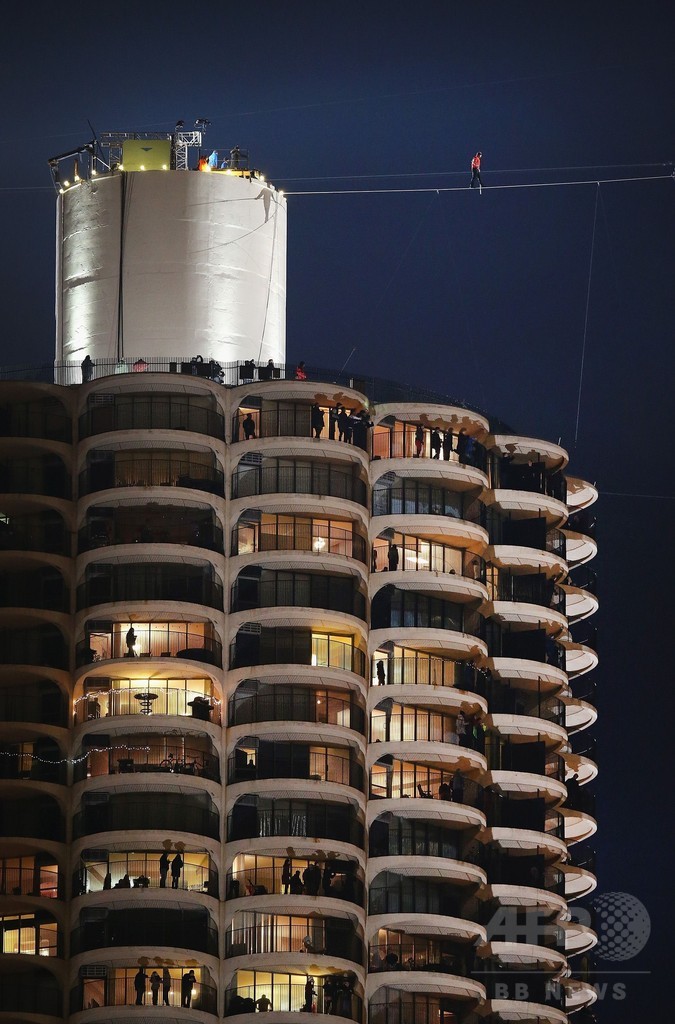 【11月3日 AFP】米国人の綱渡り名人、ニック・ワレンダ(Nik Wallenda)さん(35)が2日、米シカゴ(Chicago)の3つの高層ビルの間を命綱なしで綱渡りすることに成功し、ふたつの世界記録を打ち立てた。