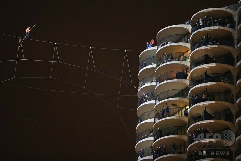 【11月3日 AFP】米国人の綱渡り名人、ニック・ワレンダ(Nik Wallenda)さん(35)が2日、米シカゴ(Chicago)の3つの高層ビルの間を命綱なしで綱渡りすることに成功し、ふたつの世界記録を打ち立てた。