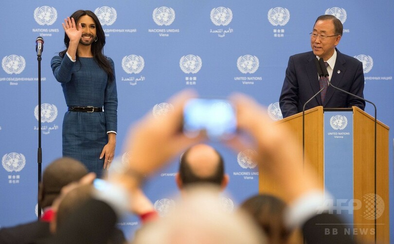 潘事務総長はウルストさんの活動を称え、自身もトランスジェンダーや同性愛者への偏見と闘っていくと語った。(c)AFP