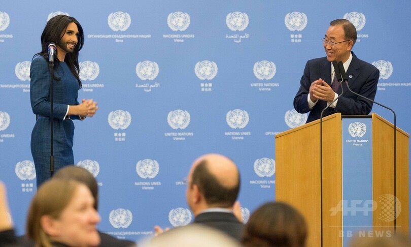 潘事務総長はウルストさんの活動を称え、自身もトランスジェンダーや同性愛者への偏見と闘っていくと語った。(c)AFP