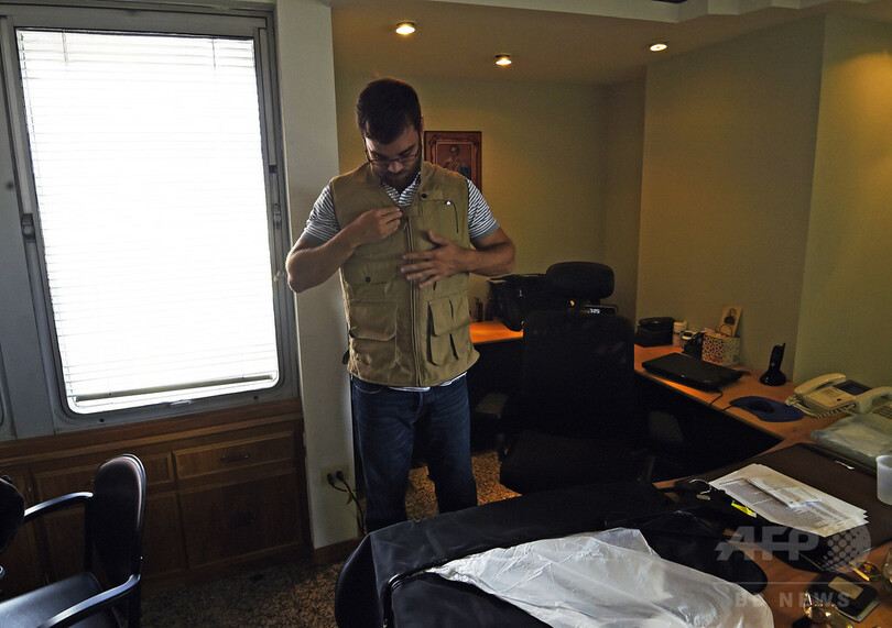 ベネズエラの首都カラカス(Caracas)で販売を手掛けるロドルフォ・アセンシ(Rodolfo Asensi)さんは、AFPの取材班に、防弾服を実際に見せてくれた。見かけは普通の服と変わらないが、強力な合成繊維であるアラミドで仕立て上げられた防弾服は手触りが異なっている。