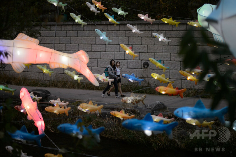 【11月7日 AFP】今年で6回目を迎える「ソウル・ランタンフェスティバル(Seoul Lantern Festival)」が7日、韓国・ソウル(Seoul)で始まる。会場となる市内中心部の清渓川(Cheonggyecheon)では、6日夜にも一足早く飾られたちょうちんを撮影する市民の姿が見られた。17日間にわたって開催されるフェスティバルでは、4種のテーマを通して、文化や歴史を紹介する。(c)AFP