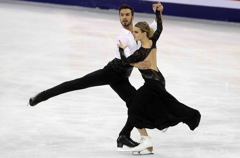 イタリアのアンナ・カッペリーニ(Anna Cappellini)/ルカ・ラノッテ(Luca Lanotte)組が62.70点で2位に、フランスのガブリエラ・パパダキス(Gabriella Papadakis)/ギヨーム・シゼロン(Guillaume Cizeron)組が62.12点で3位に入っている。(c)AFP