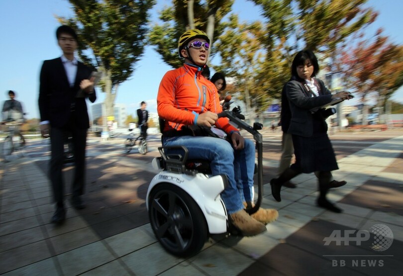【11月8日 AFP】セグウェイジャパン(Segway Japan)は7日、茨城県つくば市のモビリティロボット実験特区で、電動立ち乗り二輪車「セグウェイ(Segway)」の原理を使った電動車椅子「ジェニー(Genny)」の公道走行実験を開始した。イタリアで製造されたジェニーは、8時間の充電で30キロの走行が可能だという。(c)AFP