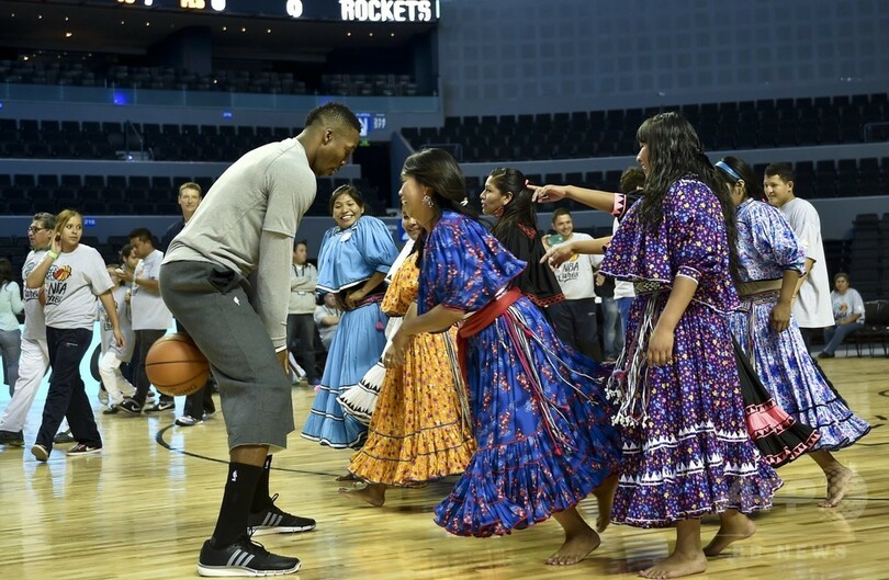 【11月13日 AFP】メキシコ市(Mexico City)で行われたヒューストン・ロケッツ(Houston Rockets)対ミネソタ・ティンバーウルブズ(Minnesota Timberwolves)の一戦を控え、選手たちがメキシコのチームにレッスンを行った。(c)AFP
