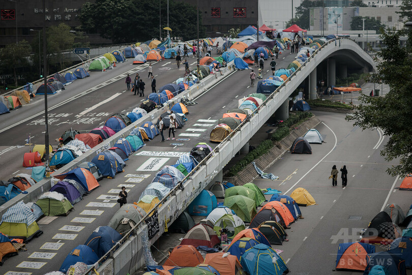 【11月13日 AFP】香港(Hong Kong)で民主的な行政長官選挙を求める学生らは、抗議運動の開始から1か月以上を経た現在も市内各所で道路の占拠を続けている。
