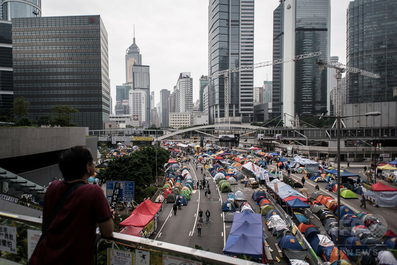 【11月13日 AFP】香港(Hong Kong)で民主的な行政長官選挙を求める学生らは、抗議運動の開始から1か月以上を経た現在も市内各所で道路の占拠を続けている。