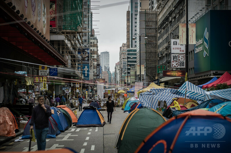 【11月13日 AFP】香港(Hong Kong)で民主的な行政長官選挙を求める学生らは、抗議運動の開始から1か月以上を経た現在も市内各所で道路の占拠を続けている。