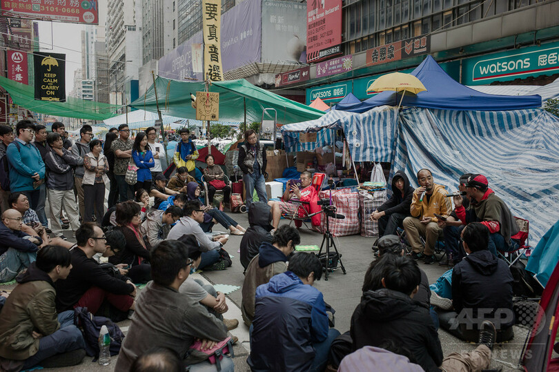 【11月13日 AFP】香港(Hong Kong)で民主的な行政長官選挙を求める学生らは、抗議運動の開始から1か月以上を経た現在も市内各所で道路の占拠を続けている。