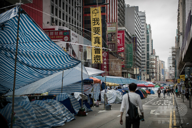 【11月13日 AFP】香港(Hong Kong)で民主的な行政長官選挙を求める学生らは、抗議運動の開始から1か月以上を経た現在も市内各所で道路の占拠を続けている。