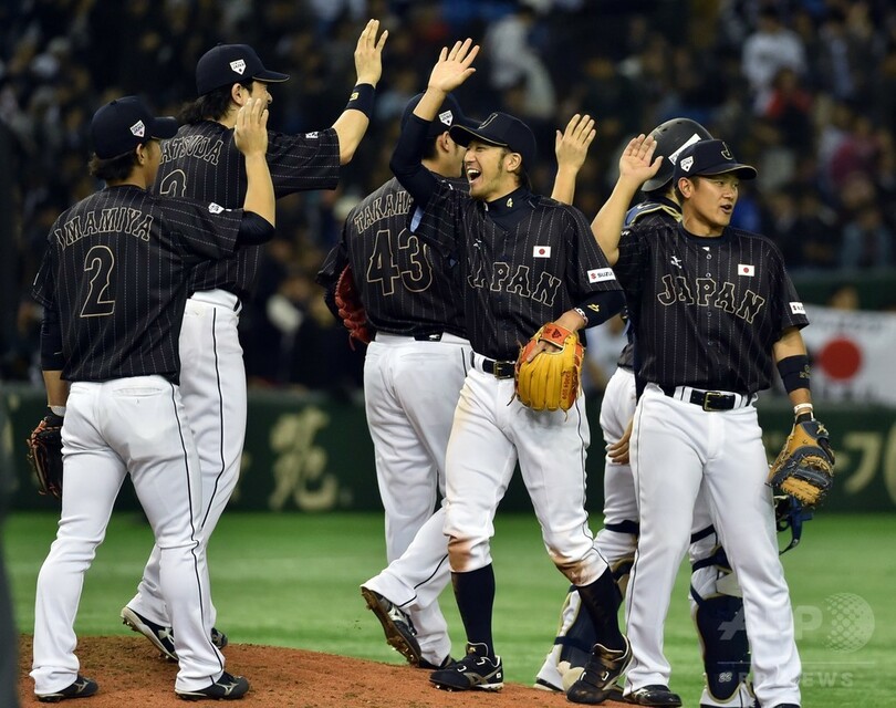 スポーツ 野球 日本人選手 日本が大リーグ選抜に勝利、日米野球 2014年11月15日 9:14 発信地:東京 [ アジア・オセアニア 東京 ] このニュースをシェア ‹ › ❮ 1/12 ❯ 日米野球シリーズ第2戦、大リーグ(MLB)選抜対日本。勝利を喜ぶ日本の選手(2014年11月14日撮影)。(c)AFP/YOSHIKAZU TSUNO 画像作成中 ! 【11月15日 AFP】日米野球は14日、東京ドーム(Tokyo Dome)でシリーズ第2戦が行われ、日本は8-4で大リーグ(MLB)選抜に勝利した。(c)AFP 野球 一覧へ> メディア・報道関係・法人の方向け 写真・動画 購入のお問合せ>