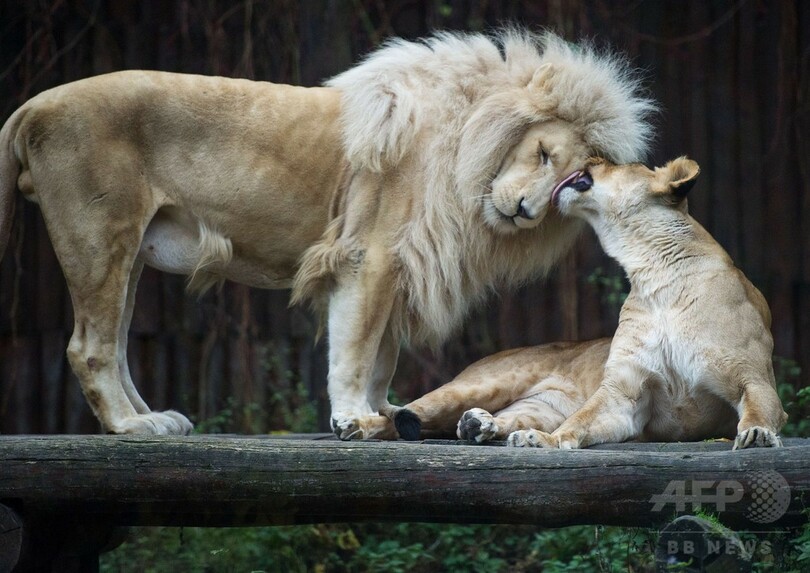 【11月15日 AFP】スロバキアの首都ブラチスラバ(Bratislava)の動物園でホワイトライオンのカップルが仲むつまじく暮らしている。2匹はともに10歳で、オスの「ハルディル(Haldir)」はフランス・ボーバル(Beauval)、メスの「ジャワ(Jawa)」はスイス・ゴッサウ(Gossau)の動物園で生まれた。(c)AFP
