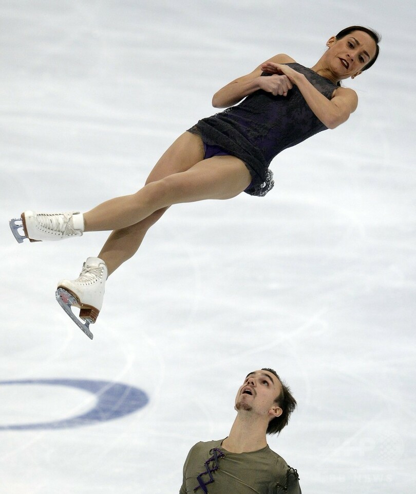 エフゲニア・タラソワ(Evgenia Tarasova)/ウラジーミル・モロゾフ(Vladimir Morozov)組が合計173.78点で2位、クリスティナ・アスタコワ(Kristina Astakhova)/アレクセイ・ロゴノフ(Alexei Rogonov)組が合計164.86点で3位に入った。(c)AFP