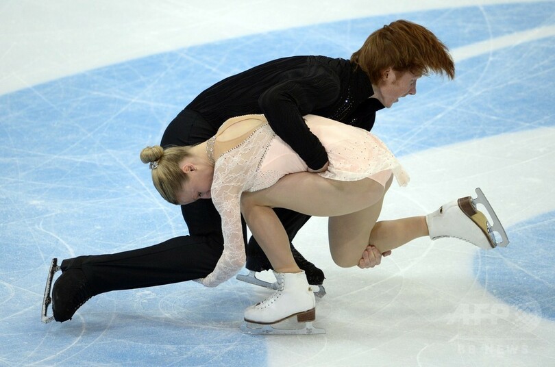 エフゲニア・タラソワ(Evgenia Tarasova)/ウラジーミル・モロゾフ(Vladimir Morozov)組が合計173.78点で2位、クリスティナ・アスタコワ(Kristina Astakhova)/アレクセイ・ロゴノフ(Alexei Rogonov)組が合計164.86点で3位に入った。(c)AFP