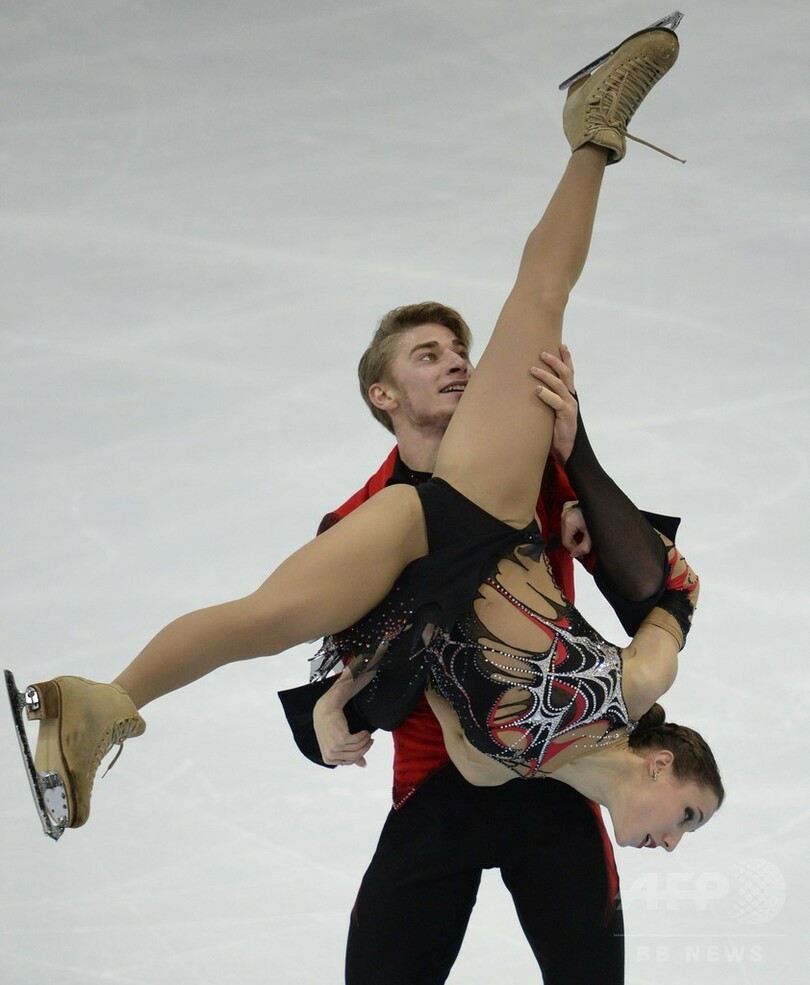 エフゲニア・タラソワ(Evgenia Tarasova)/ウラジーミル・モロゾフ(Vladimir Morozov)組が合計173.78点で2位、クリスティナ・アスタコワ(Kristina Astakhova)/アレクセイ・ロゴノフ(Alexei Rogonov)組が合計164.86点で3位に入った。(c)AFP