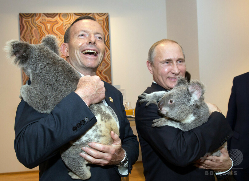 ニュース 政治・経済 こぼれ話 コアラを抱いて記念撮影、G20出席の各国首脳ら 2014年11月16日 13:38 発信地:ブリスベーン/オーストラリア [ アジア・オセアニア オーストラリア ] このニュースをシェア ‹ › ❮ 2/10 ❯ 豪ブリスベーン(Brisbane)で開幕した20か国・地域(G20)首脳会議(サミット)の初回の会合開始を前に、2匹のコアラと記念撮影したウラジーミル・プーチン(Vladimir Putin)露大統領(右)とトニー・アボット(Tony Abbott)豪首相(2014年11月15日撮影、提供)。(c)AFP/G20 Australia/ANDREW TAYLOR 画像作成中 ! 【11月16日 AFP】豪ブリスベーン(Brisbane)で15日に開幕した20か国・地域(G20)首脳会議(サミット)の初回の会合開始を前に、雌のコアラ「ジンベラン(Jimbelung)」と記念撮影した各国首脳たち。(c)AFP 政治・経済 一覧へ> メディア・報道関係・法人の方向け 写真・動画 購入のお問合せ>