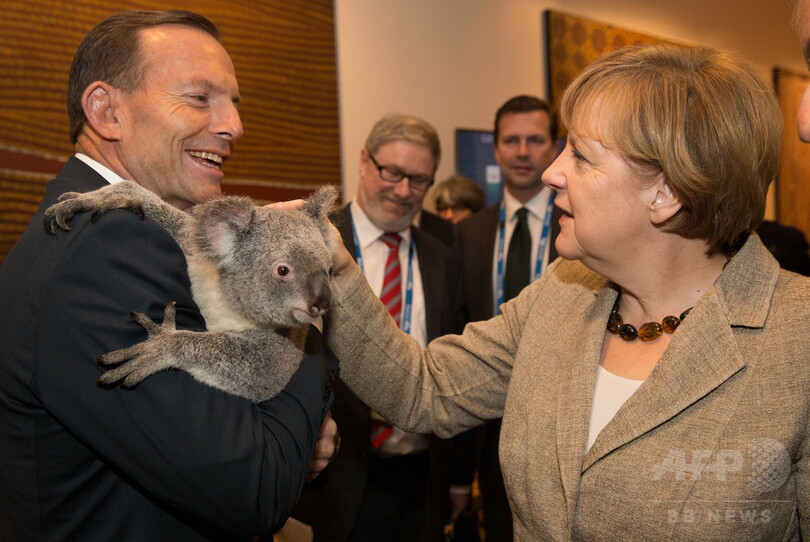 ニュース 政治・経済 こぼれ話 コアラを抱いて記念撮影、G20出席の各国首脳ら 2014年11月16日 13:38 発信地:ブリスベーン/オーストラリア [ アジア・オセアニア オーストラリア ] このニュースをシェア ‹ › ❮ 4/10 ❯ 豪ブリスベーン(Brisbane)で開幕した20か国・地域(G20)首脳会議(サミット)の初回の会合開始を前に、雌のコアラ「ジンベラン(Jimbelung)」と記念撮影したアンゲラ・メルケル(Angela Merkel)独首相(右)とトニー・アボット(Tony Abbott)豪首相(2014年11月15日撮影、提供)。(c)AFP/G20 Australia/ANDREW TAYLOR 画像作成中 ! 【11月16日 AFP】豪ブリスベーン(Brisbane)で15日に開幕した20か国・地域(G20)首脳会議(サミット)の初回の会合開始を前に、雌のコアラ「ジンベラン(Jimbelung)」と記念撮影した各国首脳たち。(c)AFP 政治・経済 一覧へ> メディア・報道関係・法人の方向け 写真・動画 購入のお問合せ>