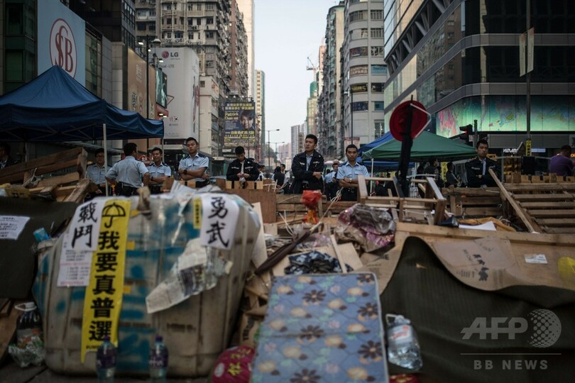 議事堂周辺では約100人の警官が、一部はヘルメットをかぶり、抗議活動のシンボルである雨傘を振り回すなどしたデモの参加者ら数百人に対し、催涙スプレーや警棒を使うなどして対応した。