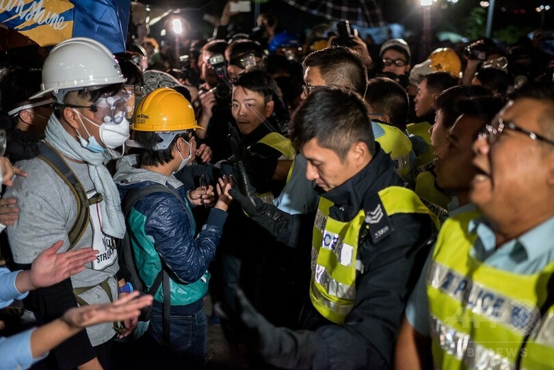 【11月19日 AFP】香港(Hong Kong)で19日未明、行政長官の選挙制度改革をめぐって抗議活動を続けている民主派のデモ隊の一部が立法会(議会)議事堂内に侵入しようとしたことを受けて、警察とデモ隊が激しく衝突、デモ隊の4人が逮捕された。