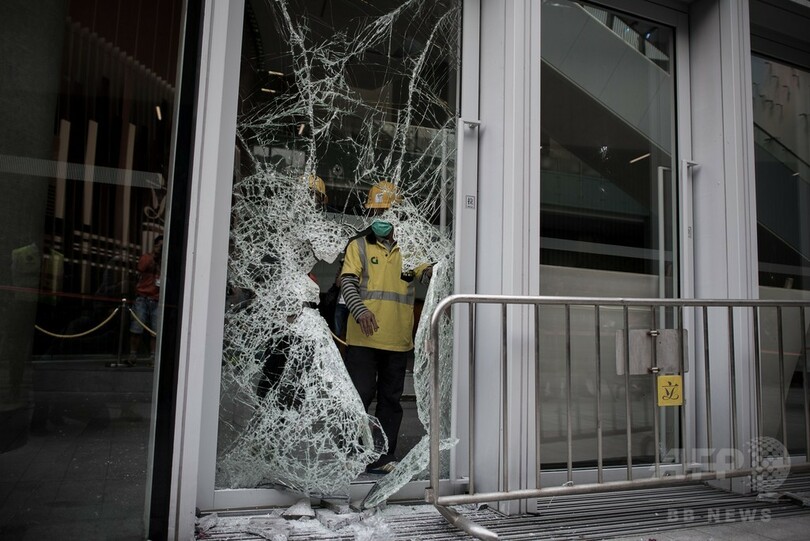 香港デモ隊、議会突入図り警官隊と衝突 4人逮捕