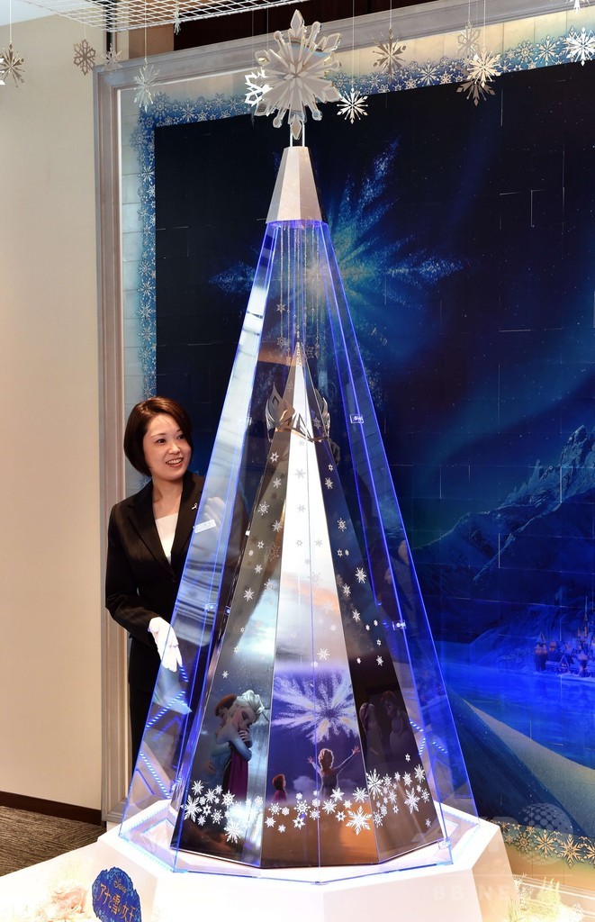 【11月20日 AFP】東京・銀座の田中貴金属ジュエリー(Tanaka Kikinzoku Jewelry)は19日、ディズニー(Disney)の大ヒット映画『アナと雪の女王(Frozen)』のキャラクターらがあしらわれたクリスマスツリーを公開した。高さ2.6メートル、重さ31キロのこのツリーは、純プラチナ製で最上部には星型の飾りが付いている。価格は3億円で、クリスマス当日まで展示される。(c)AFP