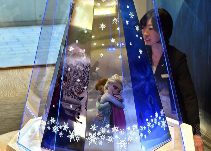 【11月20日 AFP】東京・銀座の田中貴金属ジュエリー(Tanaka Kikinzoku Jewelry)は19日、ディズニー(Disney)の大ヒット映画『アナと雪の女王(Frozen)』のキャラクターらがあしらわれたクリスマスツリーを公開した。高さ2.6メートル、重さ31キロのこのツリーは、純プラチナ製で最上部には星型の飾りが付いている。価格は3億円で、クリスマス当日まで展示される。(c)AFP
