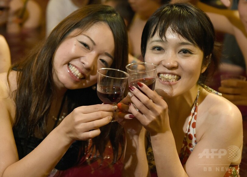 【11月20日 AFP】神奈川県箱根町の温泉テーマパーク「箱根小涌園ユネッサン(Hakone Kowakien Yunessun)」で20日、2014年の「ボージョレ・ヌーボー(Beaujolais Nouveau)」解禁を祝い「ボージョレ・ヌーボー風呂」が始まった。同日には仏ブルゴーニュ(Burgundy)のワインメーカー「ラブレ・ロワ(Laboure-Roi)」社のチボー・ガラン(Thibault Garin)副社長とミス・ブルゴーニュのマリー・レインツ(Marie Reintz)さんも訪れ、温泉客に初物ワインを振る舞った。毎年恒例の限定イベントは30日まで。(c)AFP